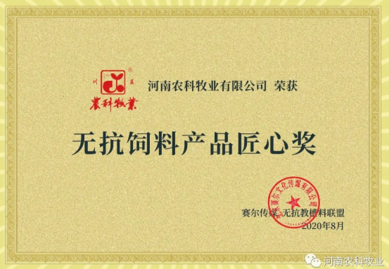 粉包粒教槽料 获得了由赛尔传媒、无抗教槽料联盟隆重颁发的“无抗饲料产品匠心奖”,为本次大会增添一道亮色。